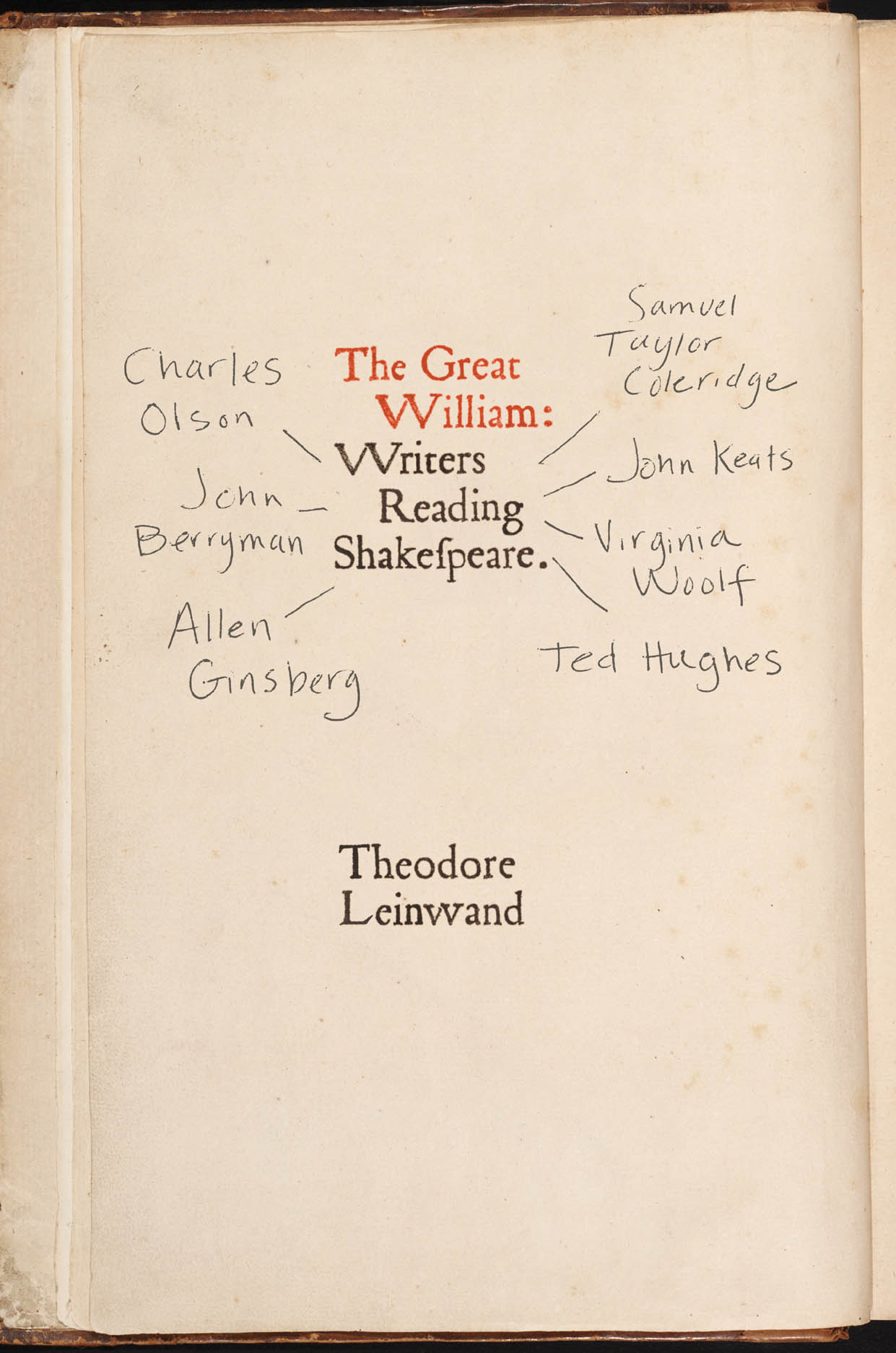 Theodore Leinwand builds impressively detailed accounts of these writers’ experiences through their marginalia, lectures, letters, journals, and reading notes. We learn why Woolf associated reading Shakespeare with her brother Thoby, and what Ginsberg meant when referring to the mouth feel of Shakespeare’s verse. From Hughes’s attempts to find a “skeleton key” to all of Shakespeare’s plays to Berryman’s tormented efforts to edit King Lear, Leinwand reveals the palpable energy and conviction with which these seven writers engaged with Shakespeare, their moments of utter self-confidence and profound vexation. In uncovering these intense public and private reactions, The Great William connects major writers’ hitherto unremarked scenes of reading Shakespeare with our own.