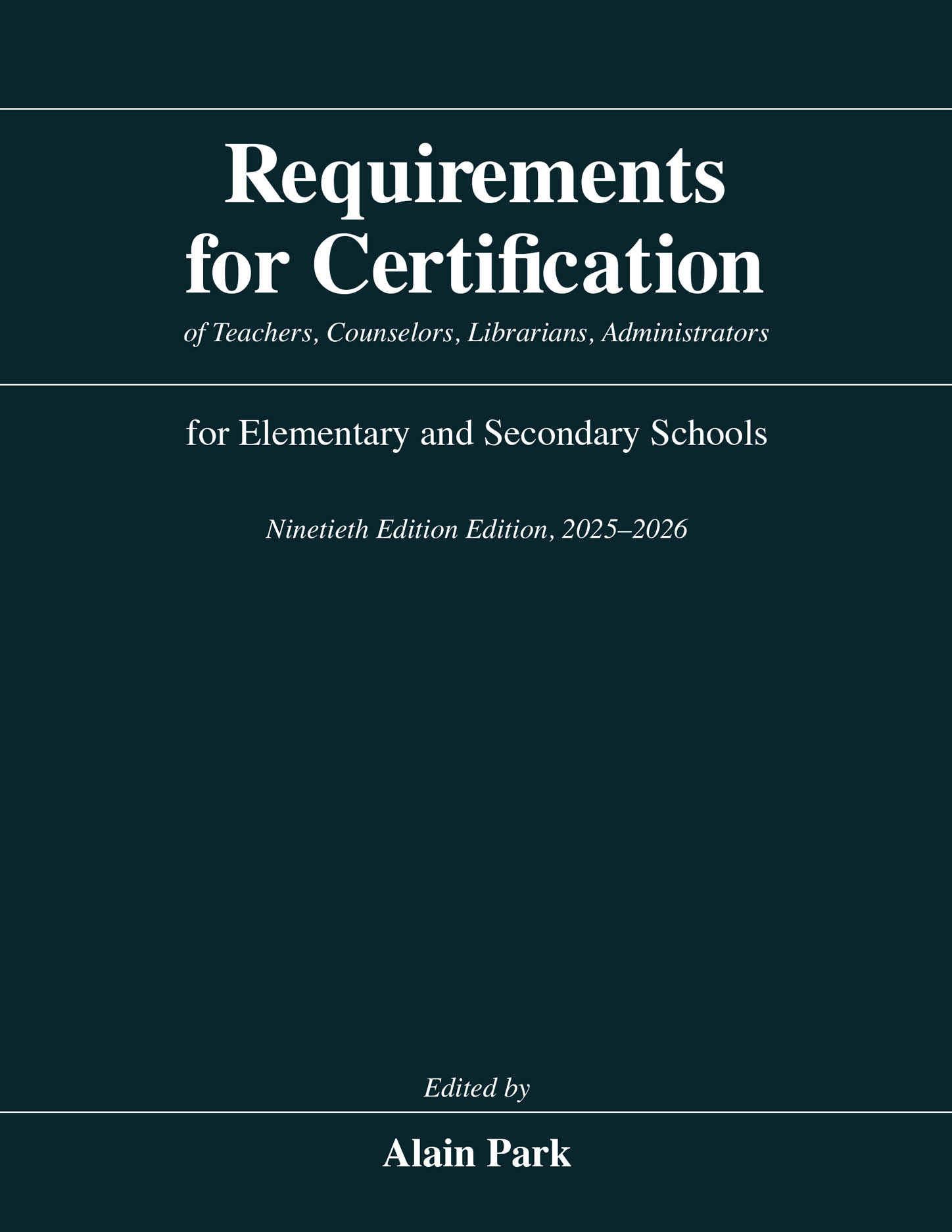 Requirements for Certification of Teachers, Counselors, Librarians, Administrators for Elementary and Secondary Schools, Ninetieth Edition, 2025–2026