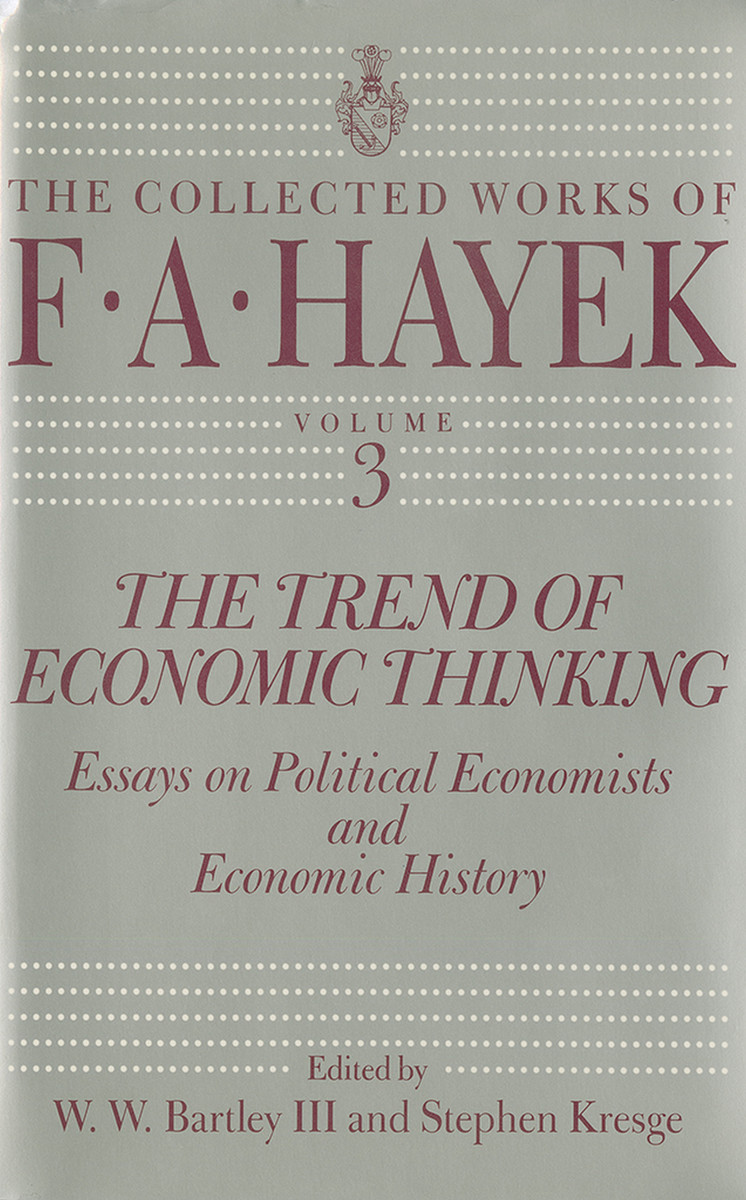 The Trend of Economic Thinking captures Hayek’s views on political economists and economic history—on Mandeville, Hume, Cantillon, Adam Smith, and Henry Thornton. Framed by insightful editorial notes, fifteen newly collected essays—including five previously unpublished pieces and two others never before available in English—provide a fascinating introduction to the historical context of political economy and the evolution of monetary practices. In a highlight of the collection, "On Being an Economist," Hayek reflects on the influence of economists, the time required for new ideas to take hold, the best way to educate economic theorists, and the need to follow one’s own interests, often in opposition to fashionable beliefs. As always, the words of this outspoken scholar are sure to provoke debate.