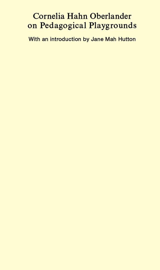 Cornelia Hahn Oberlander on Pedagogical Playgrounds is a curated selection of writings by a landscape architect dedicated to children’s right to play in urban environments. This volume assembles key texts from the 1960s and 1970s where Oberlander urges city planners and developers to recognize playgrounds as important sites for childhood development and to include them in new construction. She emphasizes the social benefits that free play and independent discovery create, and she provides practical proposals for the formulation of new playgrounds.