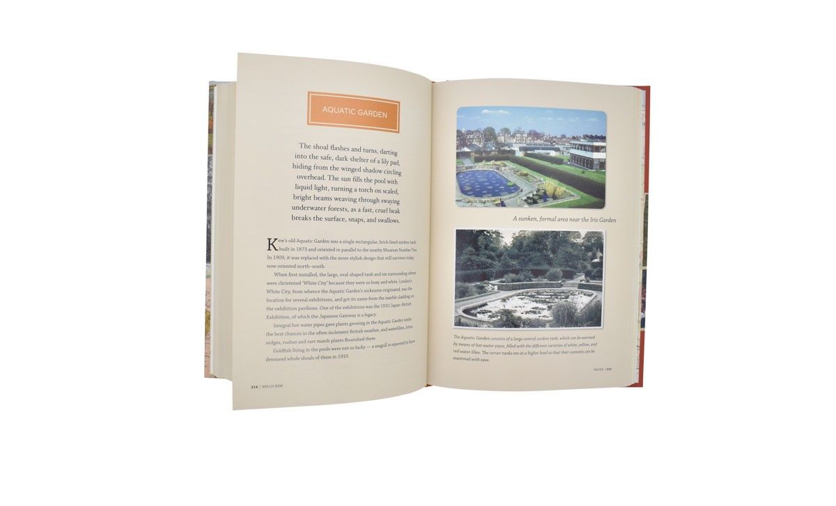 'Hello Kew is a compilation of words and pictures that celebrates the long history of souvenir guidebooks at the Royal Botanic Gardens, Kew and through them recreates the experience of visiting Kew through the ages. This beautifully curated album includes fascinating cuttings, charming pictures, and intriguing stories. It allows readers to time-travel through Kew’s ancient landscape, glimpsing history and discovering the Gardens. It is a keepsake from the past, a souvenir from a trip to a time before ours, a book that celebrates the glory of Kew. Packed full of fantastic archival imagery, including photographs, guidebooks, maps, postcards, ticket stubs and more, this beautiful gift book offers an in-depth view of the history of Kew.