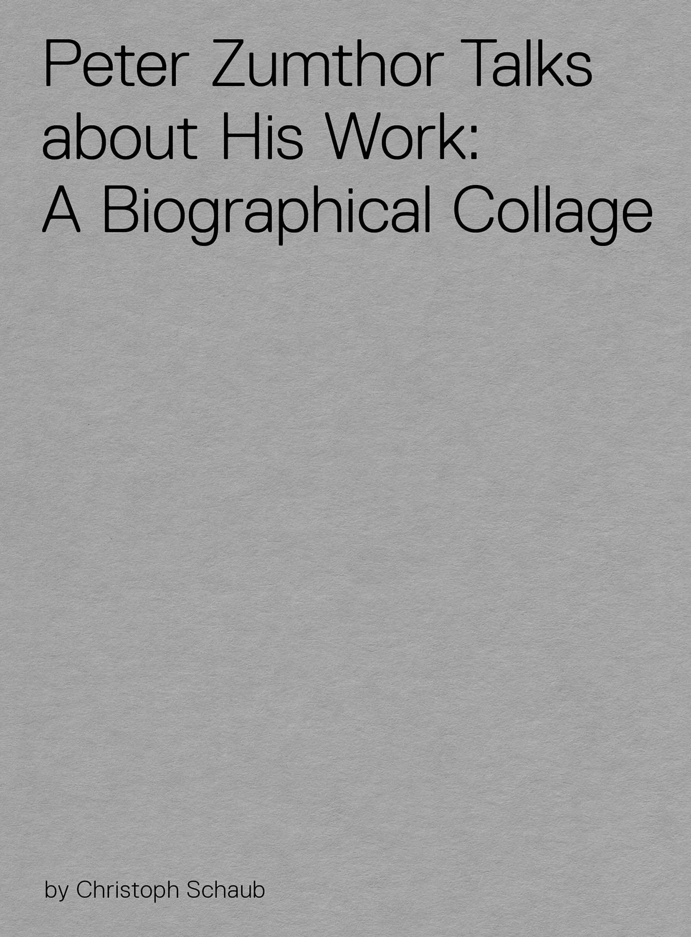 Over the past thirty years, world-renowned Swiss architect Peter Zumthor has opened up on his work in numerous interviews, conversations, lectures, and other talks, offering copious insights into the contexts of his work and his self-conception as an artist. Many of these interviews and talks have been recorded, yet most have also been to this point unreleased.